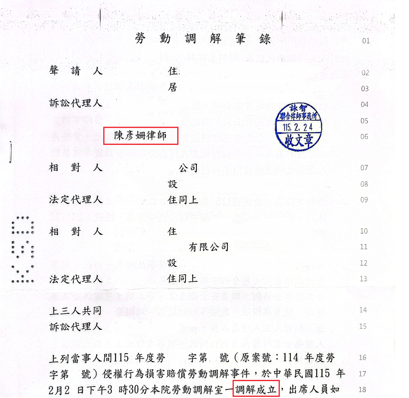 勞工發生職業災害事故受有手部肌腱及神經受損等傷害,向雇主請求損害賠償,卻因為勞動部勞工保險局認定雇主不明,不予給付職業傷害失能給付,導致調解進展受阻;嗣經鑑定醫院作成永久性勞動能力減損評估報告後,透過律師專業、理性溝通,成功說服資方提高賠償金額,為勞工爭取最大利益,盡早獲得應有之賠償。